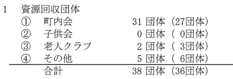 ちょっと前の資料ですが、「砂川市衛生組合支部長会議」で配布された「資源ごみ団体回収の状況」より。