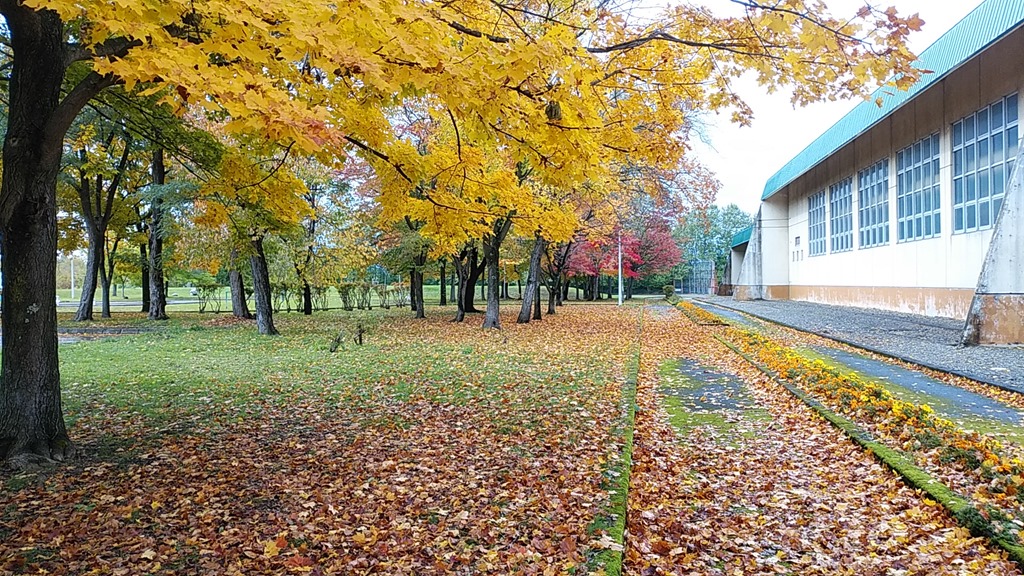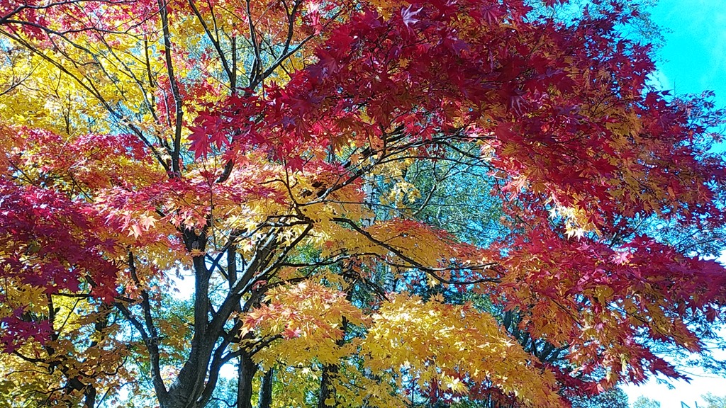 上の写真は海洋センターそばの公園の紅葉ですが、ちょうど色が混ざり合って、とても綺麗でした。