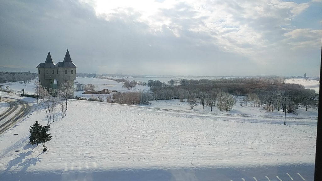 6日はちょっと早めに議員控室に行きましたが、市役所4階の展望室からはもやった景色が。