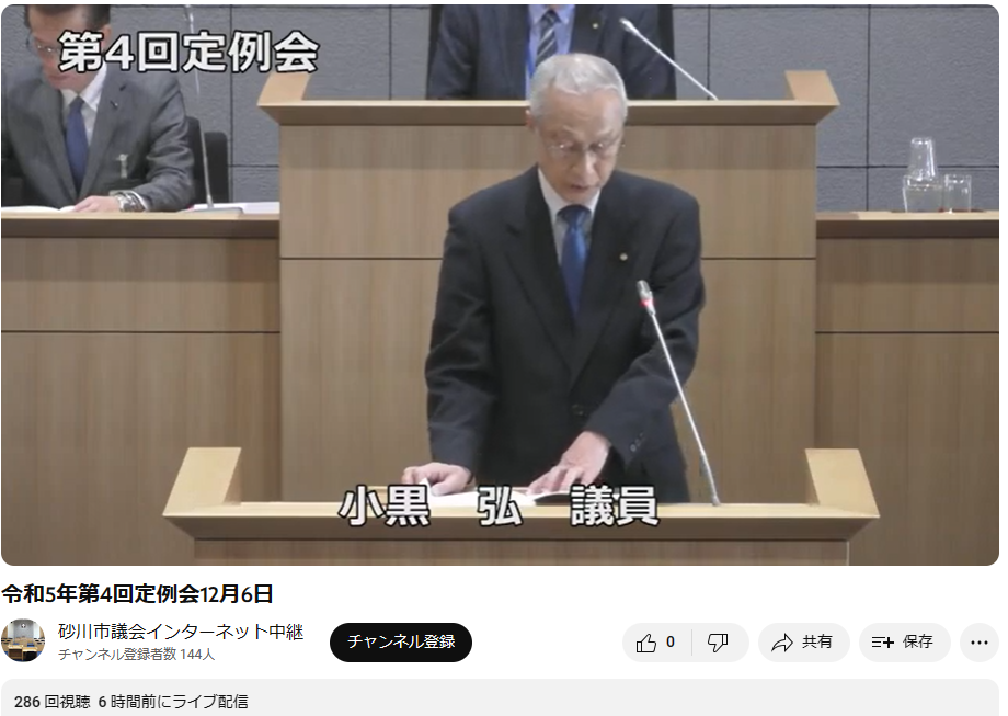 質問・答弁の様子はYouTube「一般質問 小黒 弘議員」にリンクしますのでご覧ください。