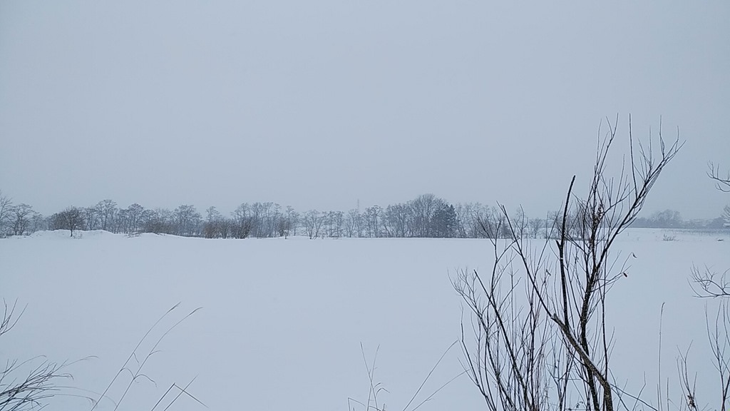 奥には樺戸連山が見えるはずの所ですが、吹雪いてはいないのに北国の冬は厳しいです。