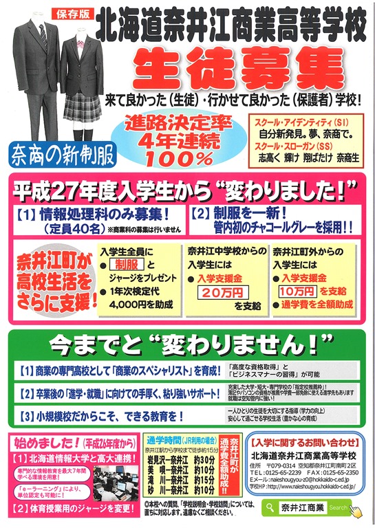 帰宅後、折り込みチラシを確認したのが左の写真です。そして、右はお隣の奈井江町の奈井江商業高校に対する助成内容が8月に折り込まれたチラシです。時期も内容も目立ち方もだいぶ違うかな・・・。