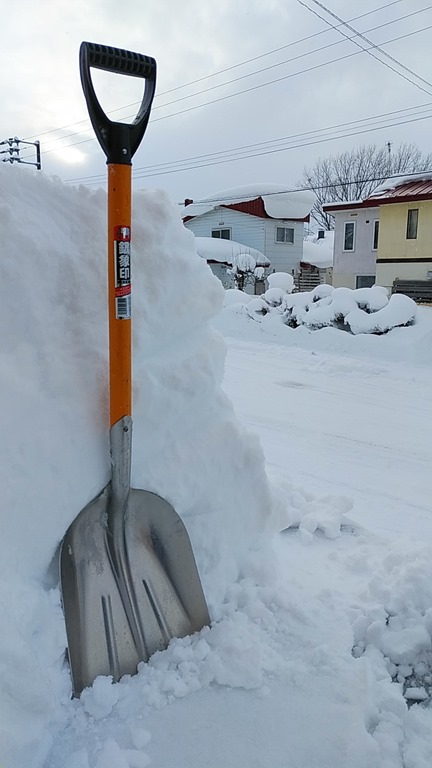 スコップの持ち手の近くまであった雪は約90cm。消防署の気象観測データでは、今日の積雪深が58cmなので、晴見は山の分だけ雪が多いのかも。