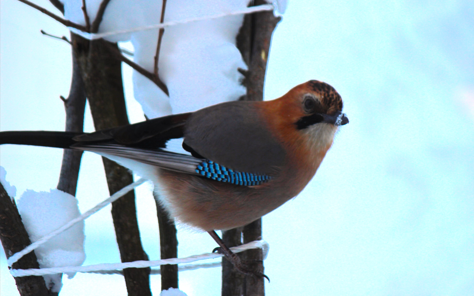 上の写真は我が家のスズメのエサ台にやって来た「カケス」。お米は好物ではなさそうで、すぐに飛んでいきました。家にいながらの野鳥観察もイイもんです。