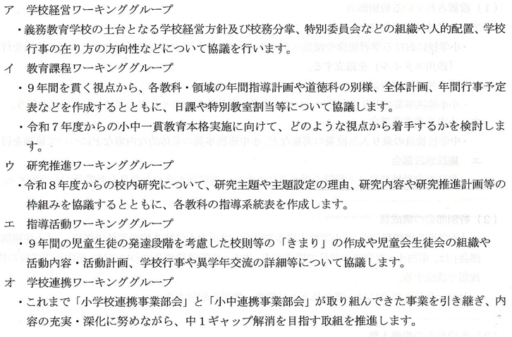 昨晩は「令和5年度第5回」でしたが、小中一貫教育推進委員会の「特別部会の再編」について協議されました。