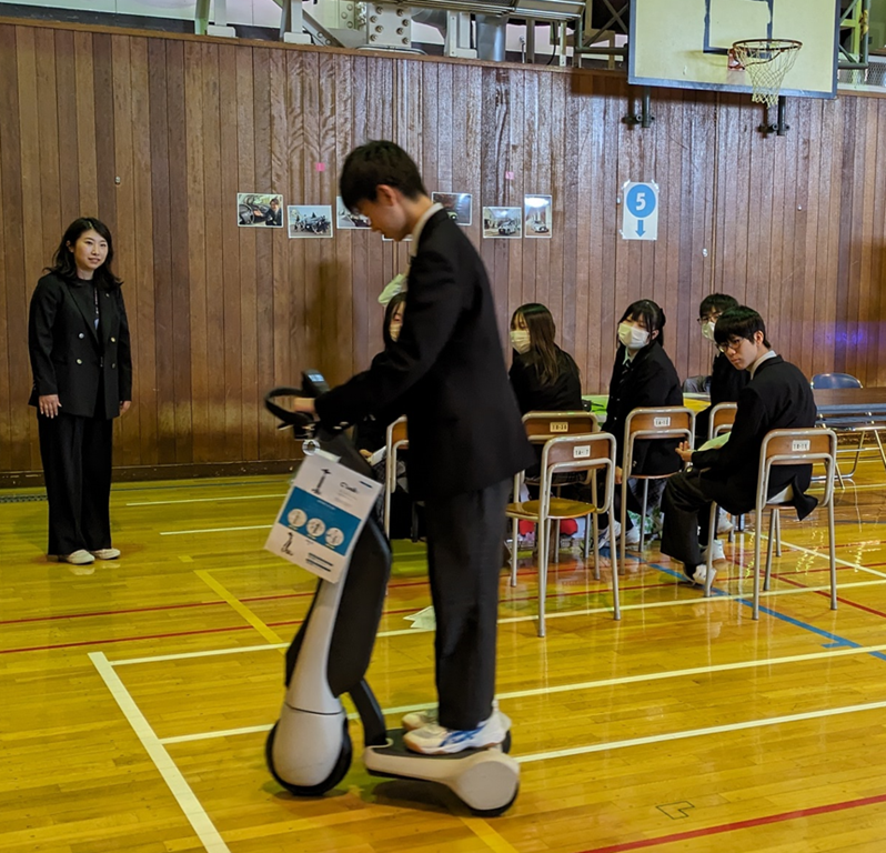 写真左はトヨタレンタリースでCwalkの試乗体験。右はハスコムモバイルで業務内容の説明を受けています。