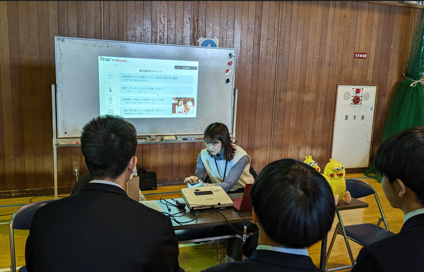 前方に座っているのは対象者の1年生、手前は2年生で応援隊です。仕掛けはこう