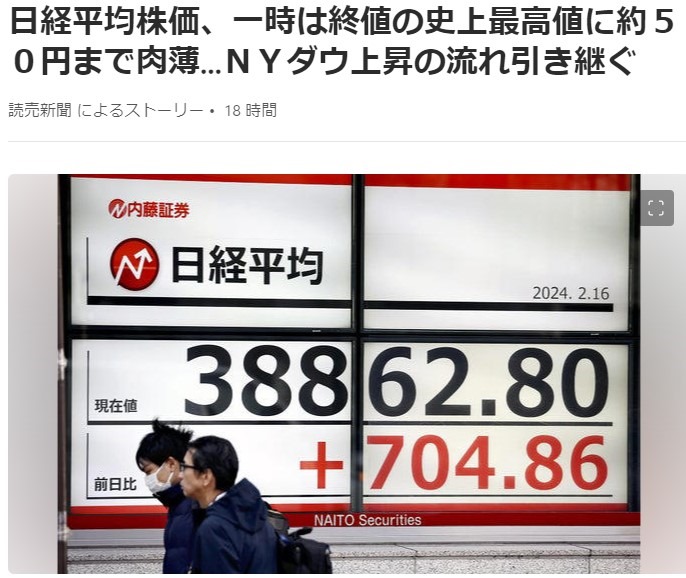 「株」にはあまり興味がありませんが、史上最高値が気になりました。どこか景気の良い所があるのでしょうか。