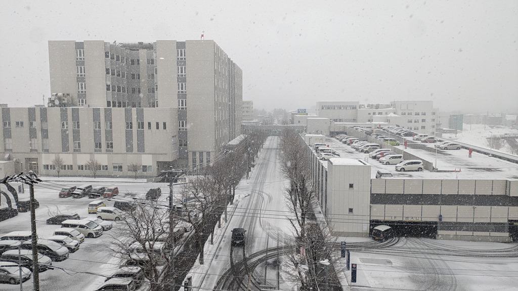 この時から少し積雪があり、何か怪しいなと思っていたら今朝の吹雪でした。思わず市立病院を写したのは、3月議会の一般質問は病院関係で1本。そして、議会初日(4日)で審議される令和5年度病院事業会計の補正予算で総括質疑をする予定。