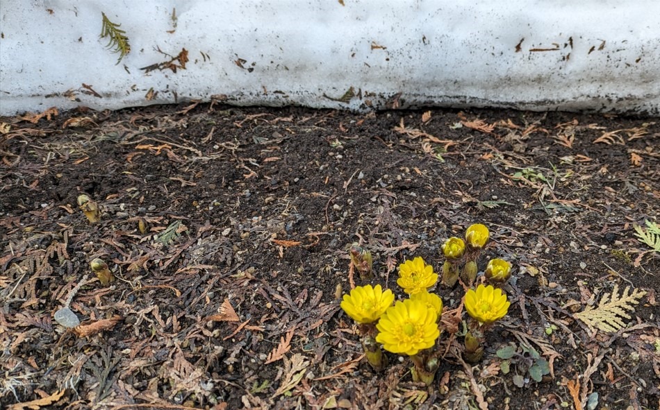 雪が解けて最初に春らしく感じるのは「フキノトウ」。花で一番先に咲くのは「福寿草」です。