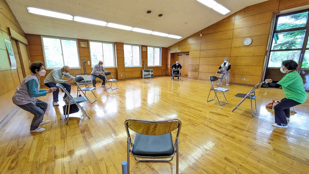 午前10時から5月の第3金曜日なので運動サロン「ニコニコ広場」の日でした。久し振りの参加でしたが、いきいき運動推進員さんの指導で1時間弱体を動かしました。
