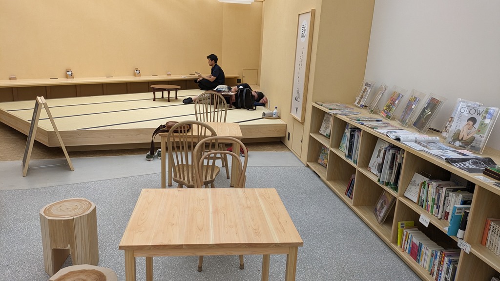 畳の間で昼寝自由。実際、寝ている若者がいました。エアコンもバッチリ効いていて私もホッとしてきました。