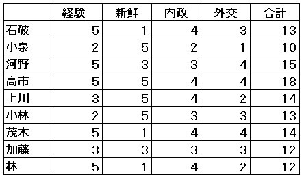 これからどんどんと候補者も絞られながら変わっていくのでしょうが、素人の私が見ても当たらずとも遠からずって思って載せてみました。