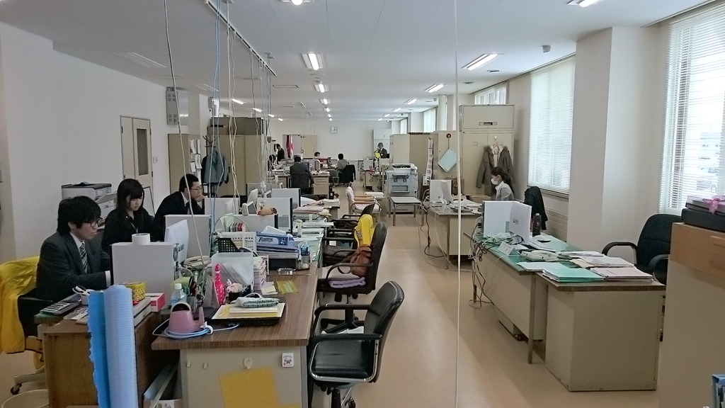 上の写真は右が委員会視察した時、左は今日写したものです。教育委員会の職員の机や椅子が並びました。パソコンのコード等は天井からになり足回りはすっきりです。