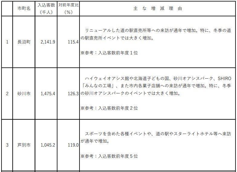 参考のために空知総合振興局の「令和5年度(2023年度)空知総合振興局管内観光入込客数調査及び訪日外国人宿泊者数調査 の結果の概要について 」にリンクします。