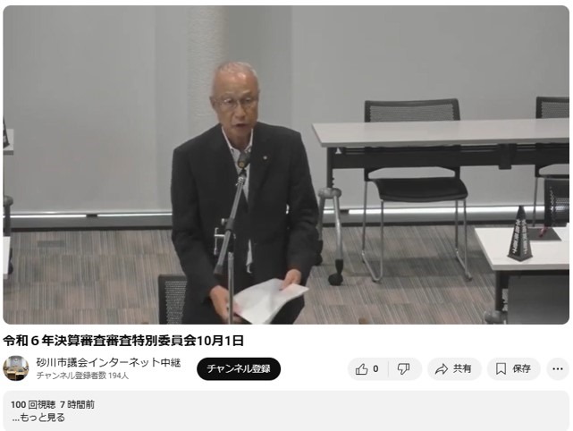 さて、10月1日に開かれた「令和6年決算審査特別委員会」の編集後の録画が砂川市議会のHPにUPされました。