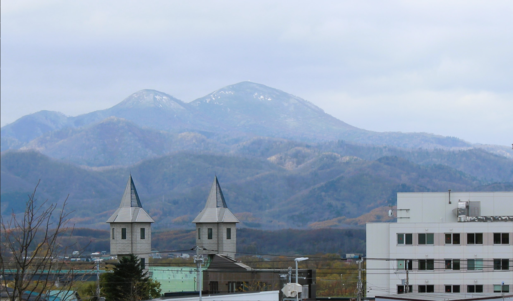 市役所に着いてピンネシリを見ると白い物が。