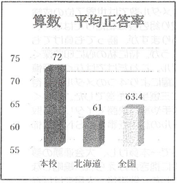 上のグラフは町内会に回ってきた中央小学校の「中央小だより」に掲載されていた中央小6年生の結果です。国語、算数とも市内の平均より上回っていたのが分かります。