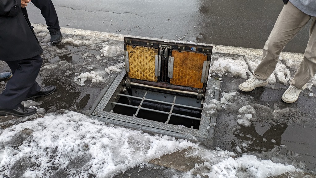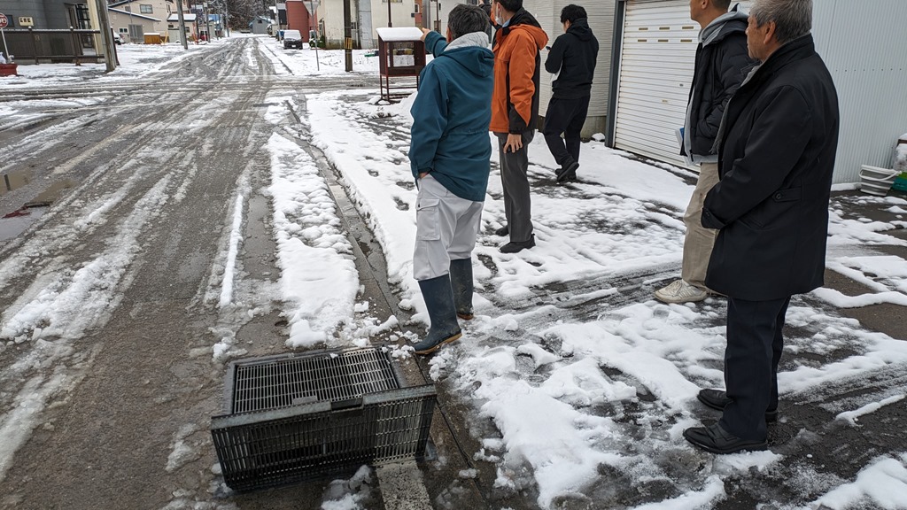 道道は片側1車線で歩道が1.5mしかなく、冬期間はとても狭くなってしまうことから流雪溝が設置されたそうです。