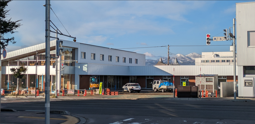 以前のパチンコ屋さんの建物があった時は全く見えませんでしたが、建設中の「すないる」の間から見えるピンネに、ちょっと感動です。