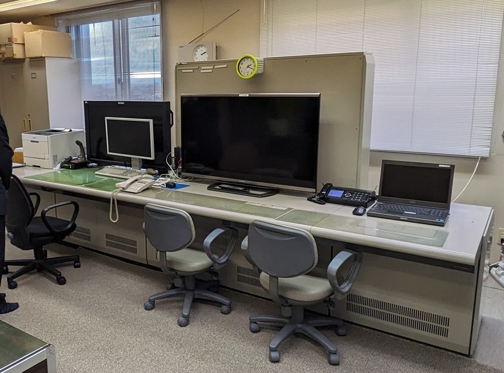 会派視察に行った左の「士別市」、右の「苫前町」とも川の水のみで流雪を行っています。そして、上の写真は両市町に設置されている中央管理室です。