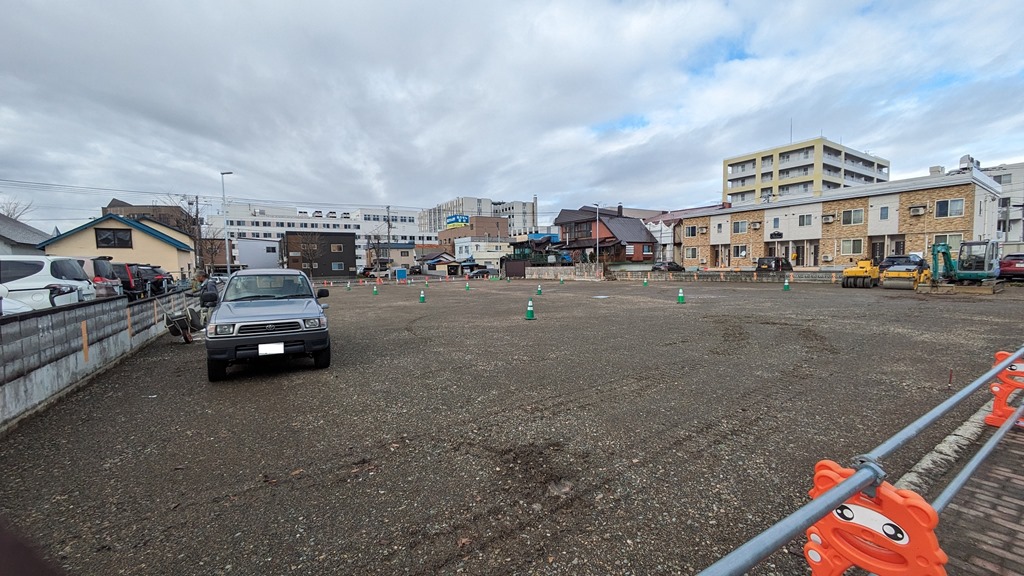 上の写真は駐車場工事の様子。多分、あとは舗装をするだけの状態だと思われます。積雪前の完成だと思います。(じゃないと大変ですものネ)