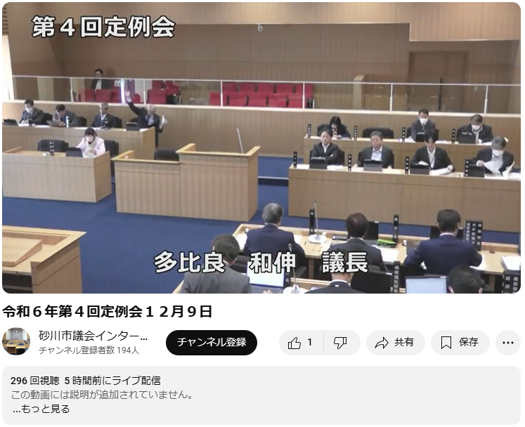 について聞きました。編集後の動画はYouTube「令和6年第4回定例会12月9日」にリンクしますので詳しくはご覧ください。なお、編集前までは314回視聴されていました。