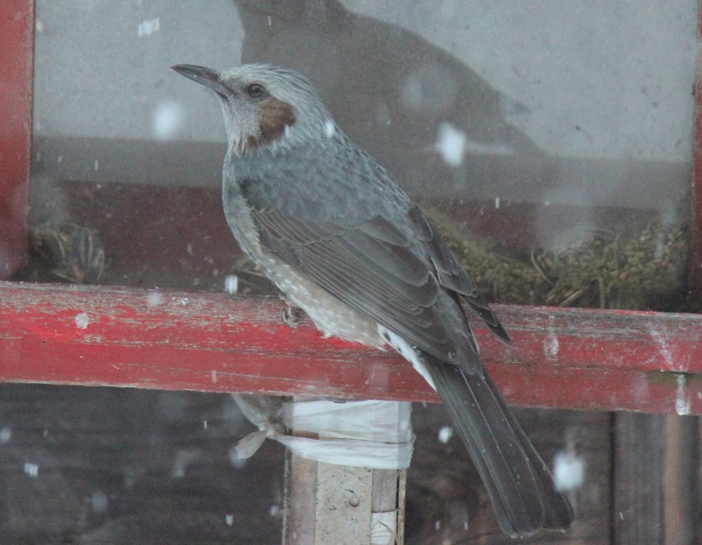 最近では、餌が無くなるとピタッと来なくなりますが、餌台に入れるとすぐ来るようになりました。どこかで、見られている・・・?