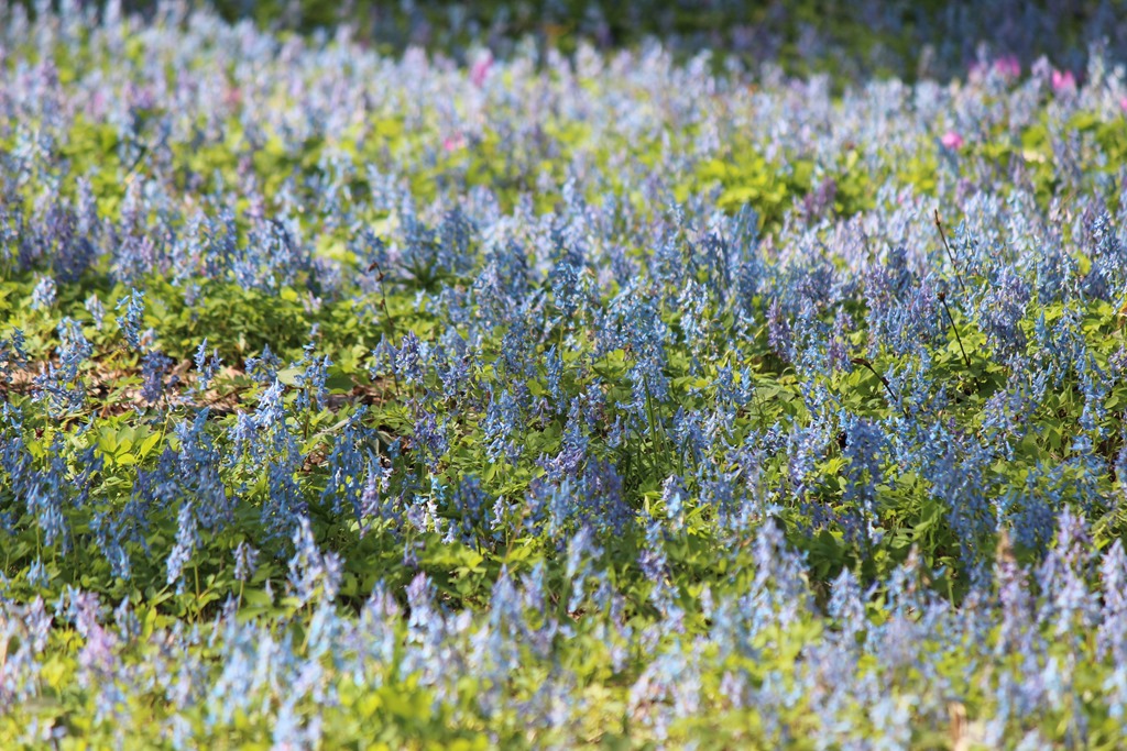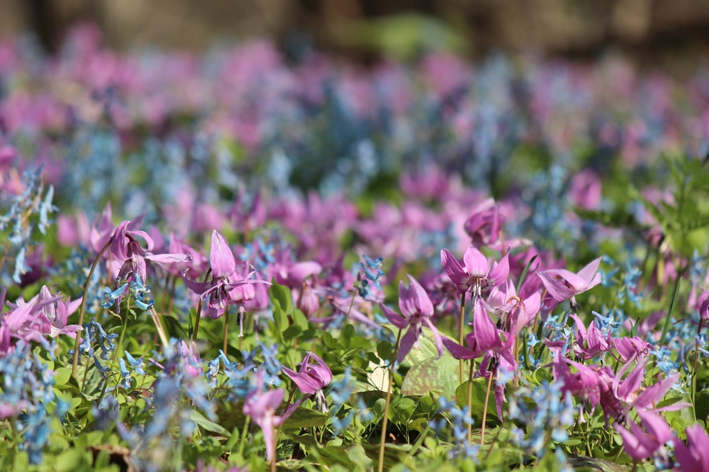 こちらはエゾエンゴサク。やはり時期的に少し遅かったです。花の間にフキが大きく育ち始めて良いアングルを探すのに苦労しました。