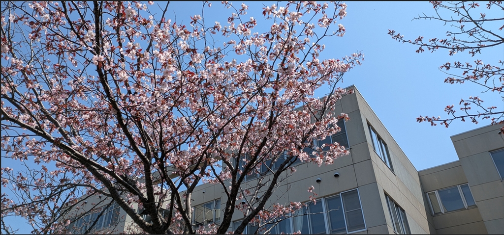 上の写真は、その砂川中学校にある桜ですが、ほぼ満開になっていました。