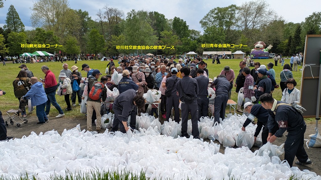緑と花の祭典は「緑あふれる公園都市すながわ」から始まりました。上の写真左の花の苗は4セット配布されたそうですが、私が見たのは2セット。
