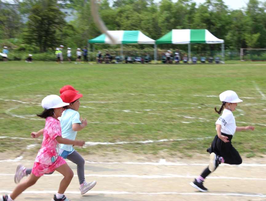 本部席のすぐ前を子ども達の徒競走が続きます。1年生は60m、2年生は80m、3~6年生は100m。