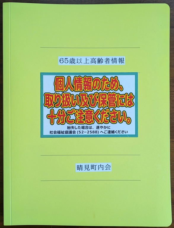 砂川市は65歳以上の高齢者情報(氏名、住所、年齢、性別)を町内会に提供しています。町内会は「これ」を基に見回り活動などを行います。