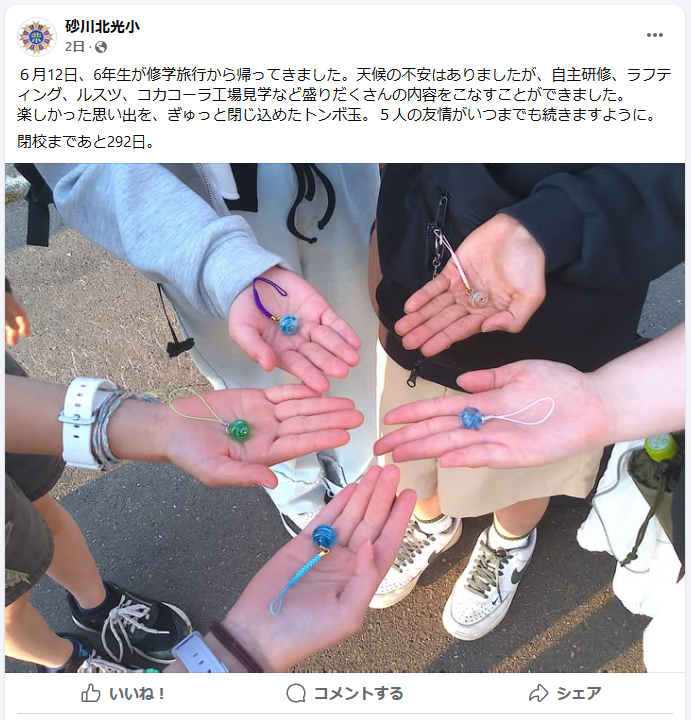 来年3月には市内に5校ある小学校が閉校します。その思い出を残そうとFBを立ち上げたようです。最新のページには「閉校まであと292日」とありました。
