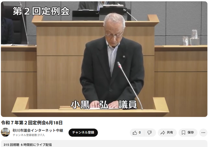 砂川市議会のインターネット中継(録画)はYouTube「令和7年第2回定例会6月18日」で見ることができます。