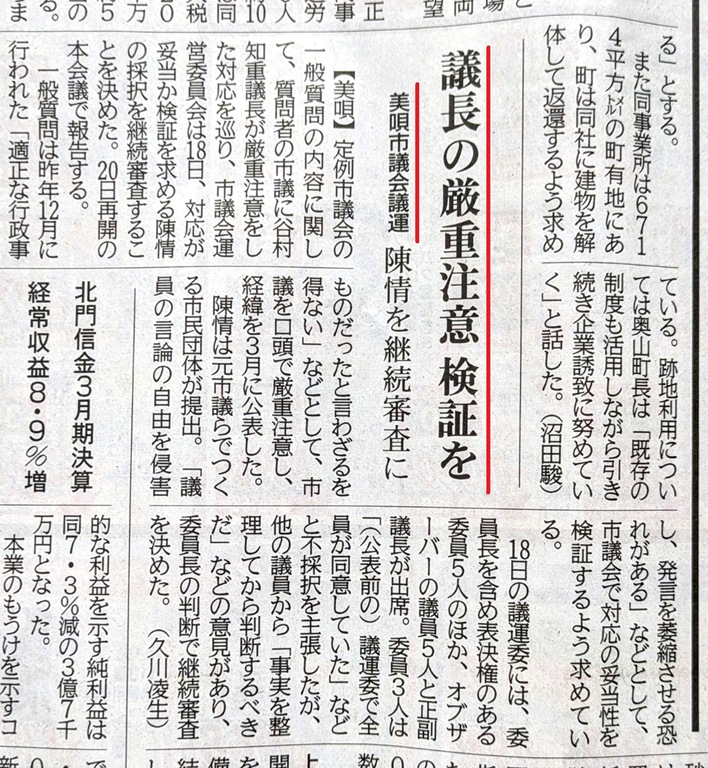 近隣議会でも滝川、岩見沢でありました。不信任決議は法的拘束力は無いのですが、厳しい判断であることは間違いありません。ただ、これほど多くなると伝家の宝刀ではなくなっているようです。
