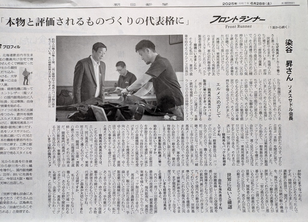 ソメスの歩み、染谷さんの人柄が上手く書かれています。ここまで、朝日新聞に取り上げられる会社の本社が砂川市にあるってことが嬉しかったので紹介しました。