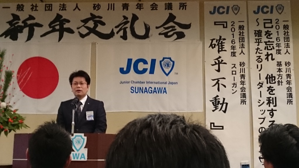 本日、午後6時、砂川パークホテルにて「一般社団法人 砂川青年会議所」の新年交礼会が開催されました。青年会議所は市内の青年経済人が集う団体ということで、毎年この交礼会は出席するようにしています。