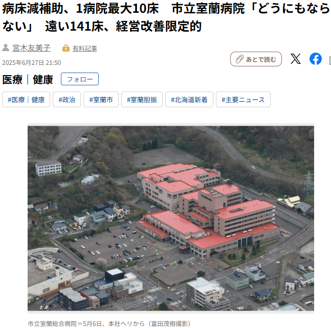 国は病床数削減する病院に一床当たり410万円の補助金を出すと言っていたのが、公立病院は対象外としました。