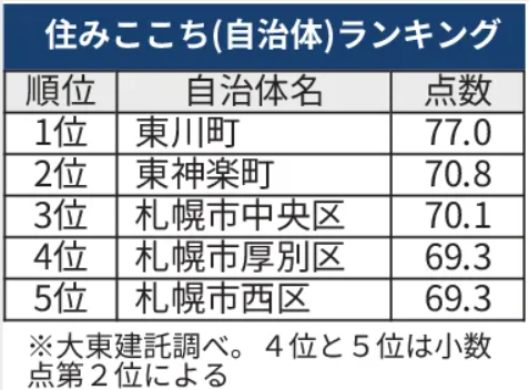 一応、大東建託のHP「街の住みここちランキング2025 自治体ランキング〈北海道版〉」にリンクします。