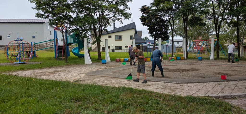 しかし、市はこれまで一度も草刈りをしてくれていません。ただ、利用者の多い砂場周辺のインターロッキングの草取りはキレイにするようにしています。