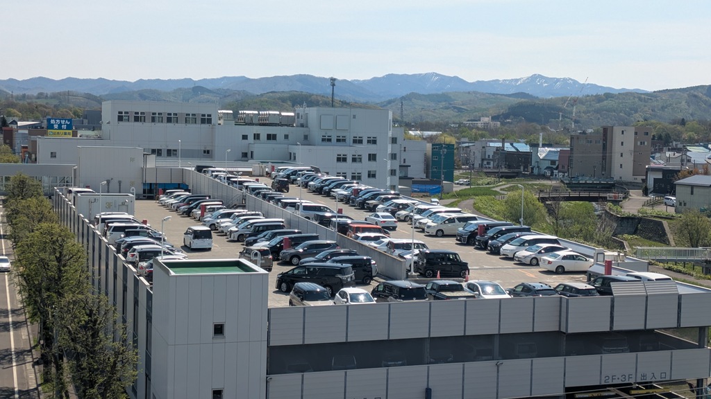 ただ、そもそも駐車可能台数(818台)より1日平均駐車場利用台数(970台)が超えている現状があります。そこで、私は職員が通勤する時間帯に立体駐車場の屋上階の様子を自分の目で確かめました。