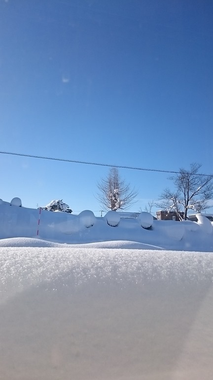 今朝は寒かったです、我が家の外の温度計は午前7時に-15℃を指していました。上の写真は日差しを浴びてキラキラ輝く雪と抜けるような青空です。(東コミセンの窓から写しました。キラキラ感が出ていませんネ・・・)
