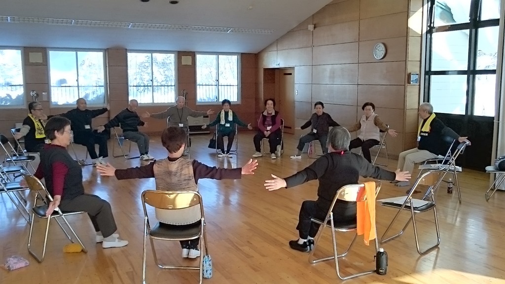 もう、1月も第3金曜日。東コミセンでは運動サロン「ニコニコ広場」が開催されました。いつもの写真ですが、この年代に入ると「いつもと変わらない」が貴重です。と言う訳で、いつものいきいき運動推進員の2名のボランティアさんの指導を受けながら1時間、体を動かします。