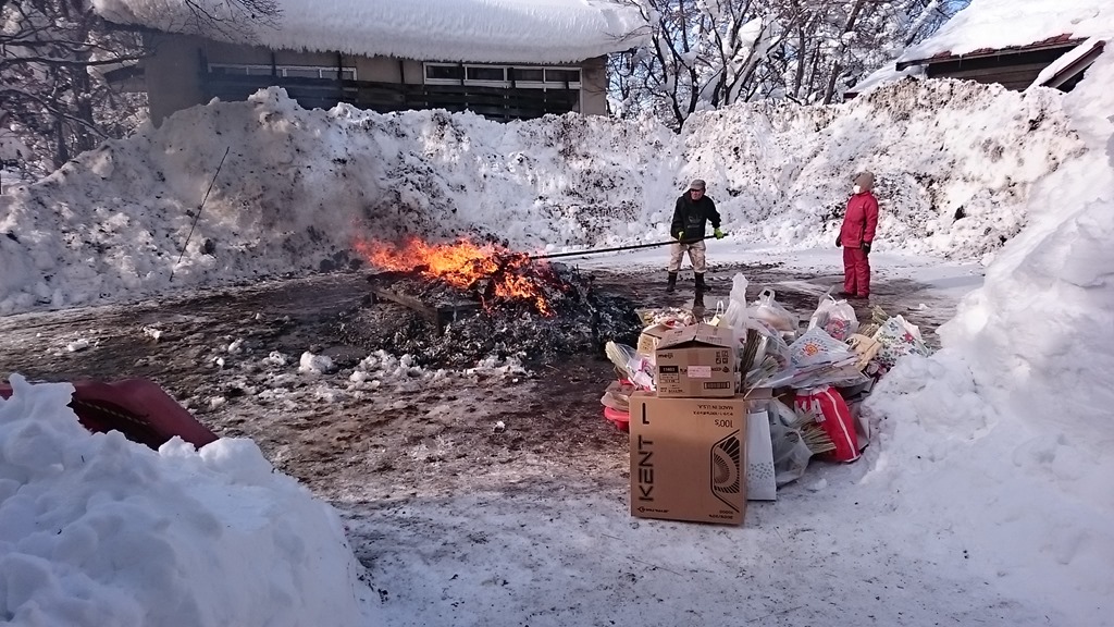 「どんど焼き」とは小正月(こしょうがつ=1月15日)の行事で、正月の松飾り・注連縄(しめなわ)・書き初めなどを家々から持ち寄り、一箇所に積み上げて燃やすという、日本全国に伝わるお正月の火祭り行事です。神事から始まったのではありましょうが、現在では宗教的意味あいは少なくなっています。(ネットより引用)