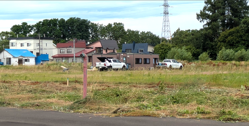 確かに情報通りで、雑草も刈られプレハブが2棟建っていました。