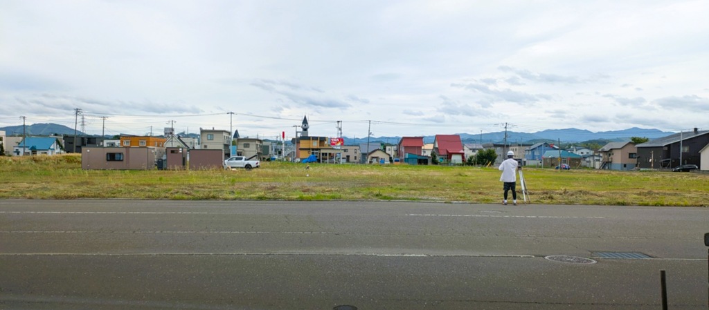 上の写真は予定地の西側から撮りましたが、測量をしているような作業も見られました。