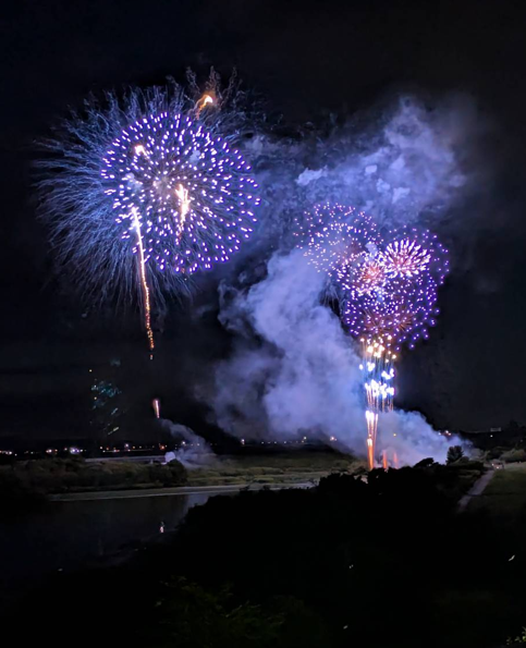 花火大会が終わると同時に予想だにしていなかった本降りの雨が。片付けのスタッフ皆さん、徒歩で帰宅の来場者の皆さんは大変だったと思われます。