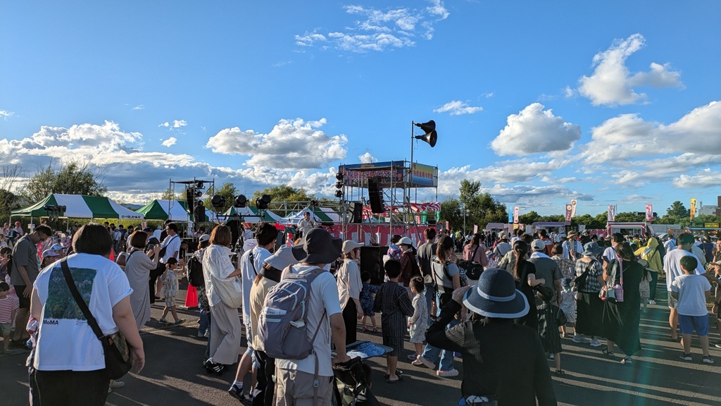 以前はAiAi前の買物駐車場で開催していた「納涼盆踊り」をオアシスパークに移しての初回。