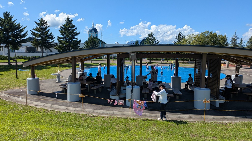 暑かったですが、水遊びする子ども達は気持ちよさそう。見守る皆さんは日陰の中で、濡れた服もすぐ乾きますネ。